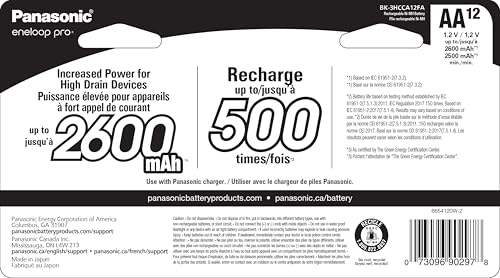 - Panasonic Eneloop Pro: High capacity, low self-discharge rate, long shelf life.
