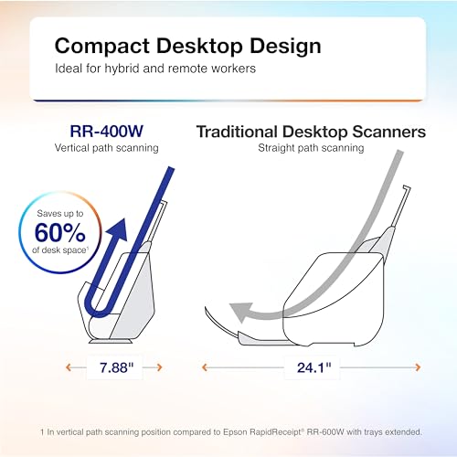 Epson RapidReceipt RR-400W Wireless Duplex Compact Desktop Receipt and Document Scanner with Included Receipt Management and PDF Software for PC and Mac and...